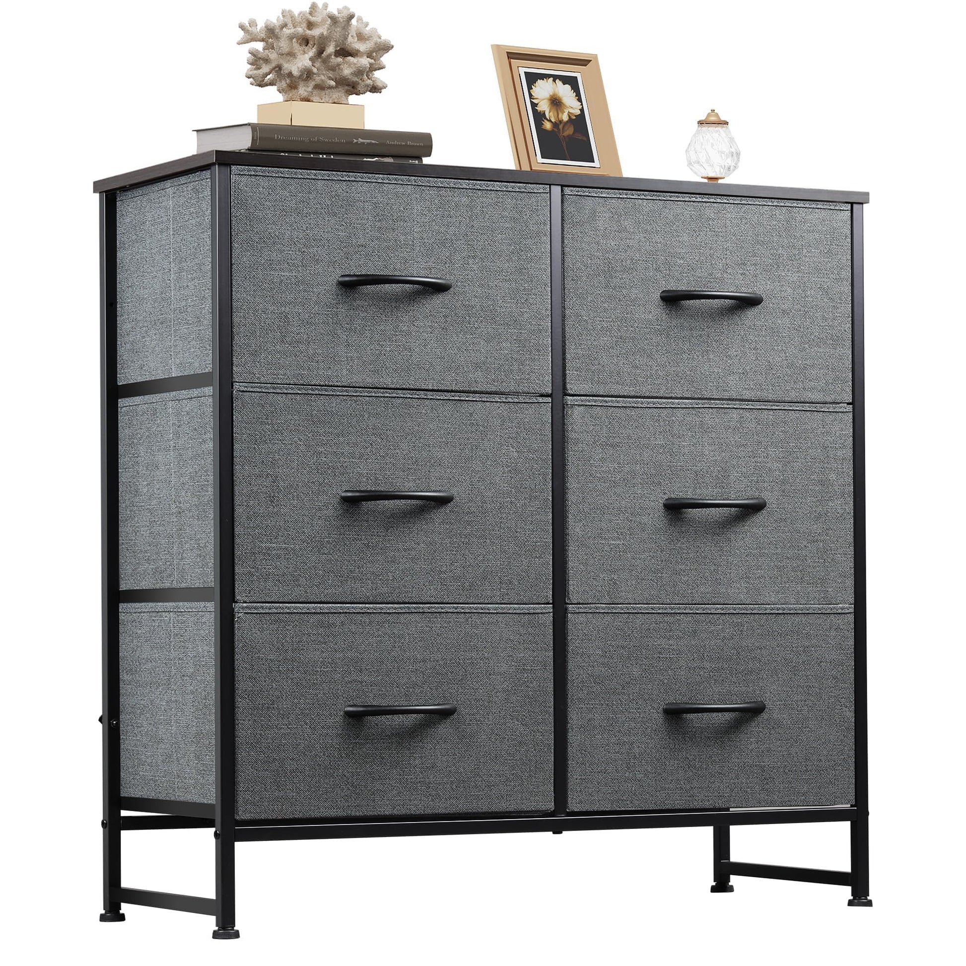 - 6 Drawer Chest: The Chest of Drawers features easy-to-pull arch handles, storage drawers made of high-quality non-woven fabric, and 4 adjustable feet that protect floor from scratches.