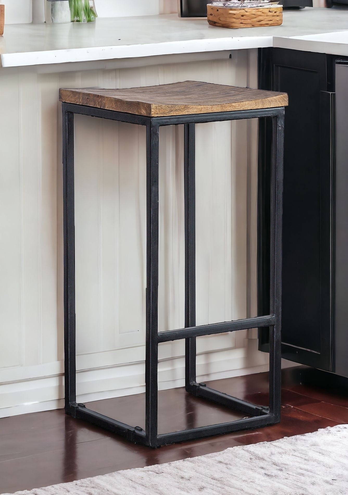 " Wood Brown And Black Iron Backless Counter Height Bar Chair