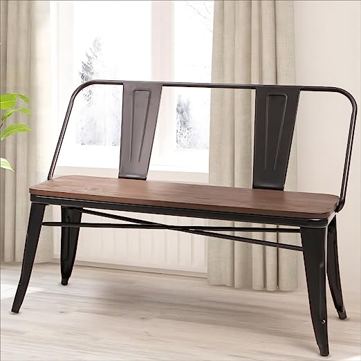 - High-Quality Materials : The industrial bench is made of 100% steel in distressed metallic color with powdered coating. Solid wood top not only provides comfortable seating but also allows dining room benches to last longer.